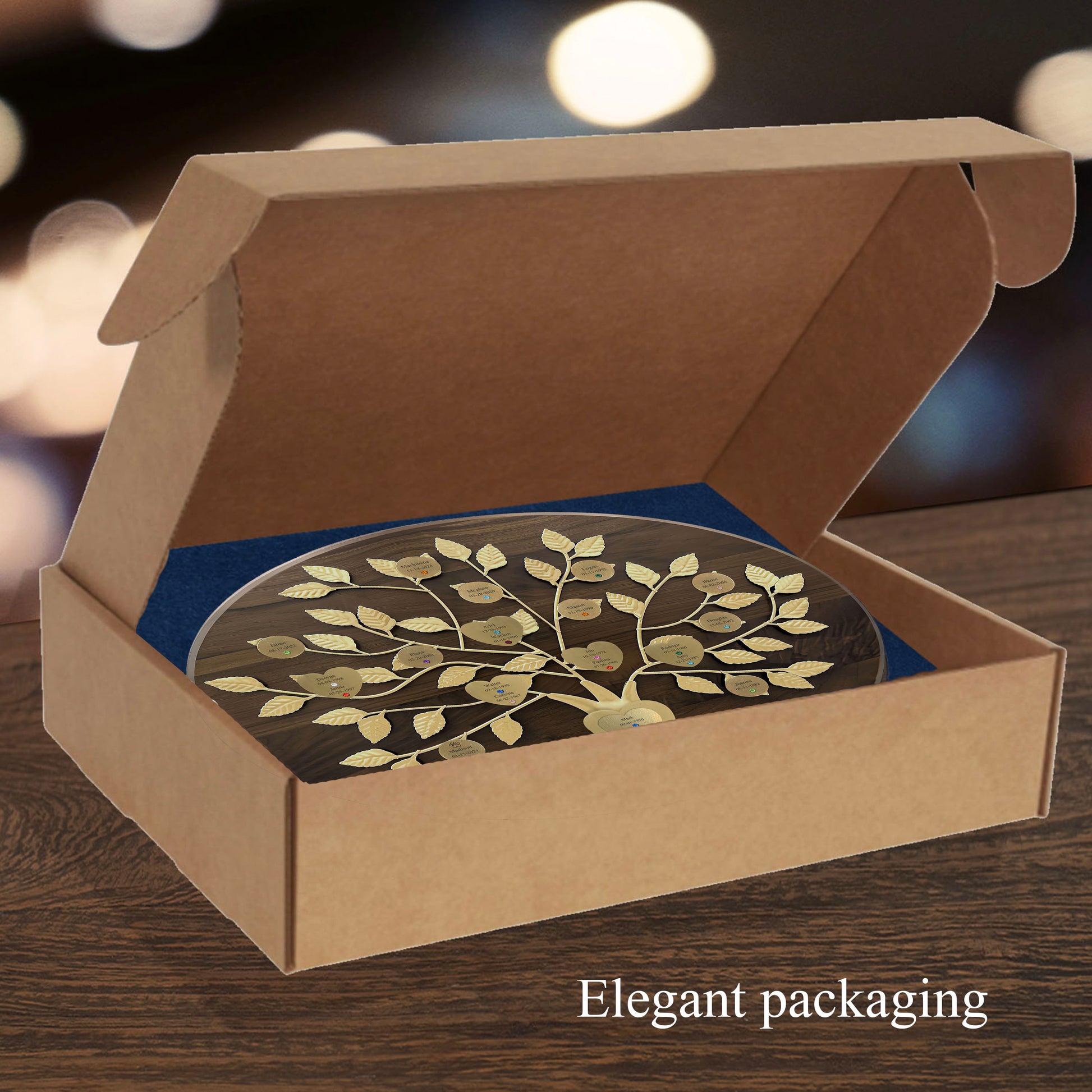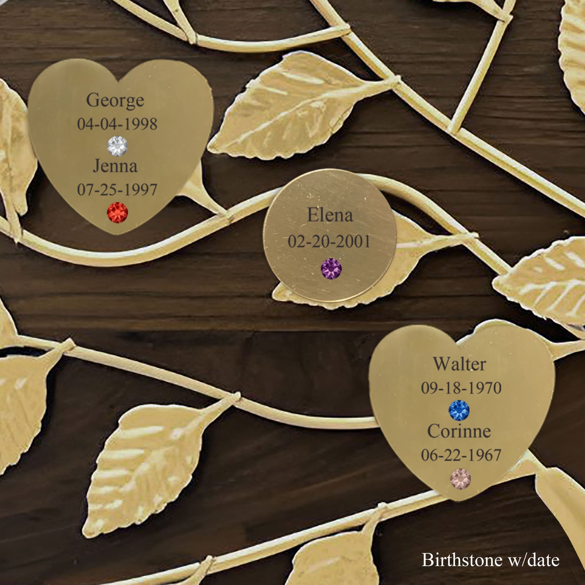 Celebrate the unbreakable bonds of family with our elegant Anniversary razortree. The solid walnut base and forged gold tree showcase the engraved and jeweled double heart design for the couple and the elegant magnetic hearts and discs for their family. A commemorative plaque with the anniversary date completes this family heirloom. Display or hang this timeless memento. An exclusive and tasteful gift for any anniversary celebration.